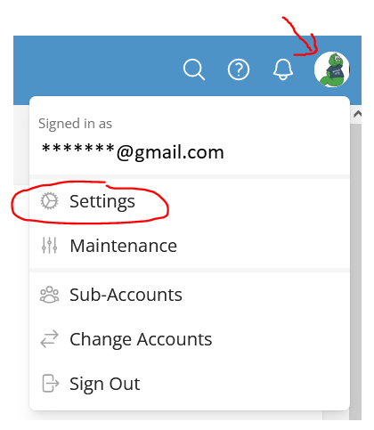 Once logged in, you can access your account settings. Click on your avatar in the upper right corner and choose settings from the drop-down menu.