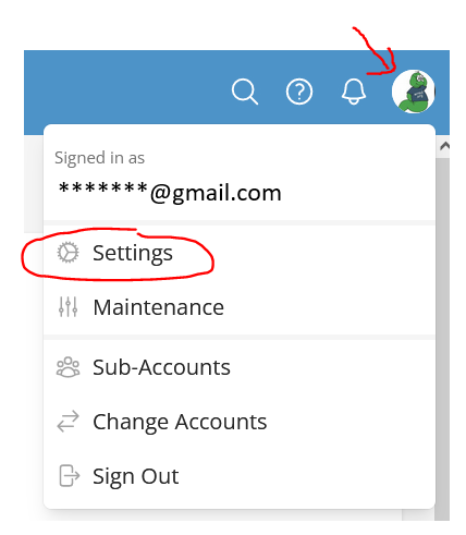 To access your account settings, click on your avatar in the upper right corner and choose Settings from the drop-down menu.