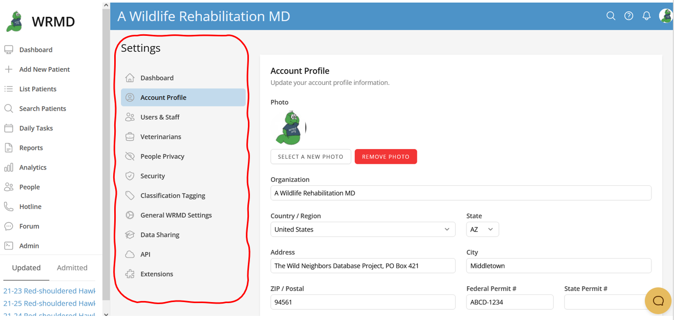 You can modify or customize any of the setting categories listed in the sidebar. The settings page includes all of your account information and important features that you will need to set up so that you and your team can use WRMD effectively.