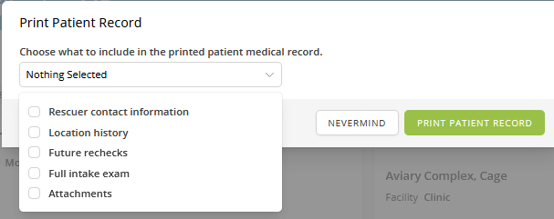 Click the Share Patient tab and choose Print Patient Medical Record on the dropdown menu.