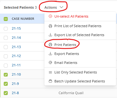 On the generated list, mark the checkboxes next to the patients whose records you want to print.