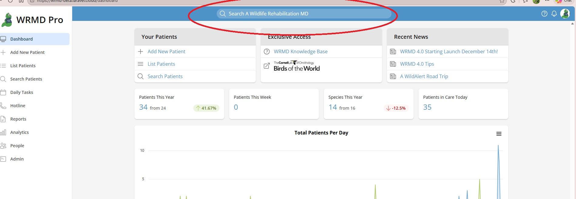 - Enter a species name for a list of patients belonging to that species. Common names with variations (e.g., mule deer, black-tailed deer) are recognized as the same species.