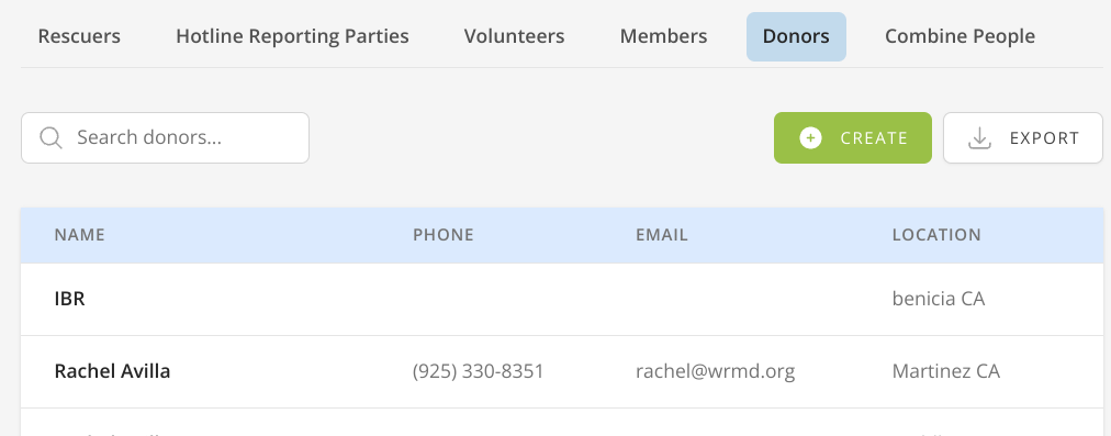 Donors are individuals, groups, or organizations that provide monetary support to your organization. They can also be Volunteers, Members, and Rescuers.