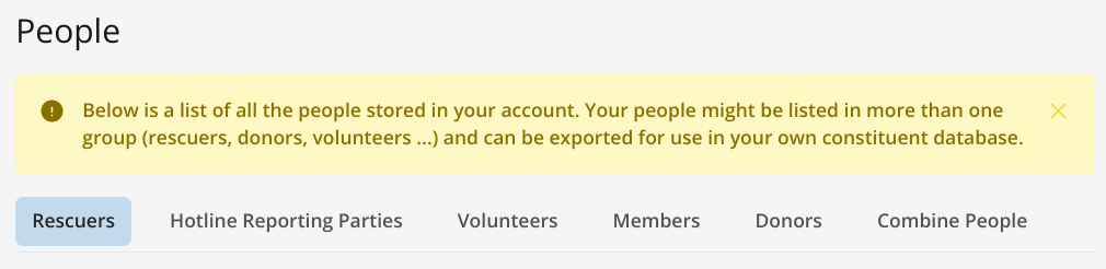 In this tutorial, you will learn how to export rescuers, volunteers, members, and donors.