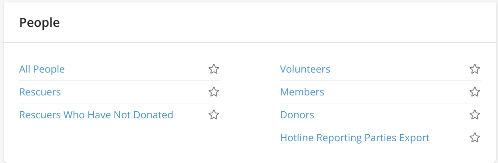 Rescuers, Volunteers, Members, and Donor Exports
