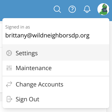 Access your account settings. Click on the round image in the top right corner and choose settings from the drop-down menu.