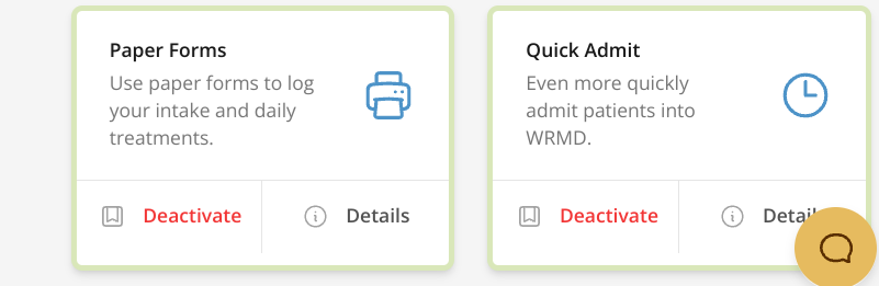 Some people use Paper Forms in combination with the Quick Admit Extension or Admit New Patient Function. They will admit the new patient electronically in WRMD using the normal New Patient screen or the Quick Admit function. Then, they will go directly to the patient record and print out the Intake Form and Treatment Log with all the basic details filled out. This approach allows them to use the Paper Forms for as long as they need to and at some future date return to WRMD to transcribe all the written details into the patient’s record.