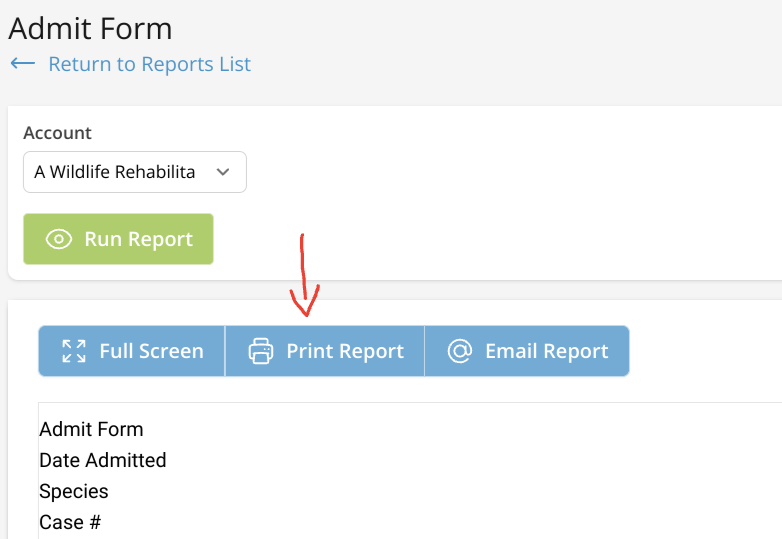 When the PDF of the form opens, click on the blue Print Report button in the middle of the page.