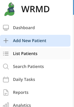 In the Quick Links panel on the left of the Dashboard, click on Add New Patient.