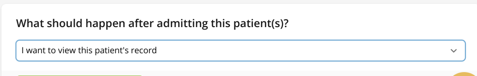 At the bottom of the New Patient Intake Form in What should happen after creating this record(s), choose I Want to View this Patient's Record from the drop-down menu.