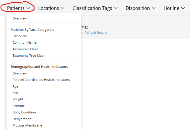 To access Patient Analytics click the arrow under Patients. There are three main sections with additional subsections you can choose from: