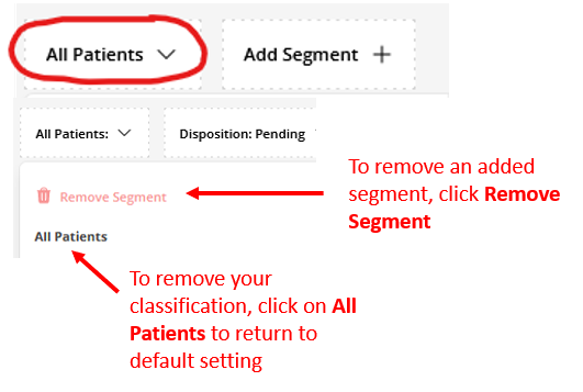 It is easy to adjust your settings once you have customized them. For instance, if you wish to remove a classification you have set, click All Patients to return to the default setting. To remove an added segment, click the arrow and choose Remove Segment from the drop-down menu.
