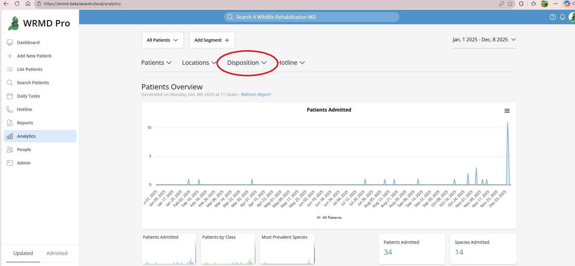 Before accessing Disposition Analytics, you should review the Navigating and Using Analytics tutorial. This will give you an overview of how to set date ranges and segment data into smaller groups than All Patients.