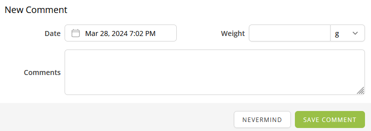 Click the Save Comment button to save your inputs into the patient's record. If you wish to cancel your inputs, click Nevermind.