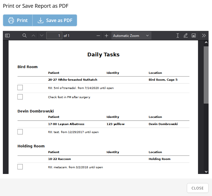 This will open a popup window where you can print or download a PDF of your daily scheduled tasks.
