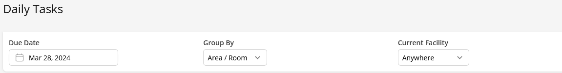 - Narrow down the list of daily tasks by choosing the facility you'd like to view such as the clinic, off-site, homecare, or none assigned.