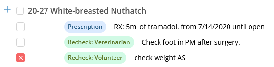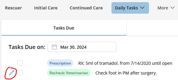 WRMD does not allow you to delete rechecks, prescriptions, nutritional plans, or notes from the Daily Tasks menu. However, you can make reasonable edits should you make a mistake.