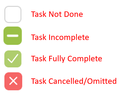 The checkbox next to the patient's name or action in the Daily Task list offers a convenient way to denote a task's status as complete, incomplete, or canceled. You can click in the box one to three times to access the following indications: